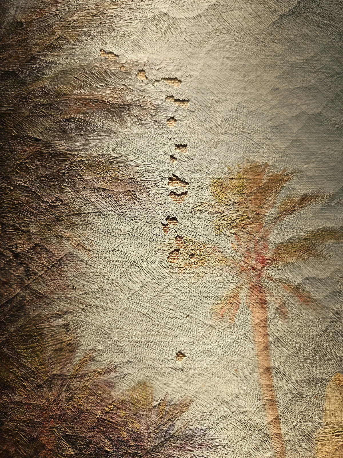 Les lacunes ont pu être mastiquées puis réintégrées. Le vernis oxydé a été retiré.